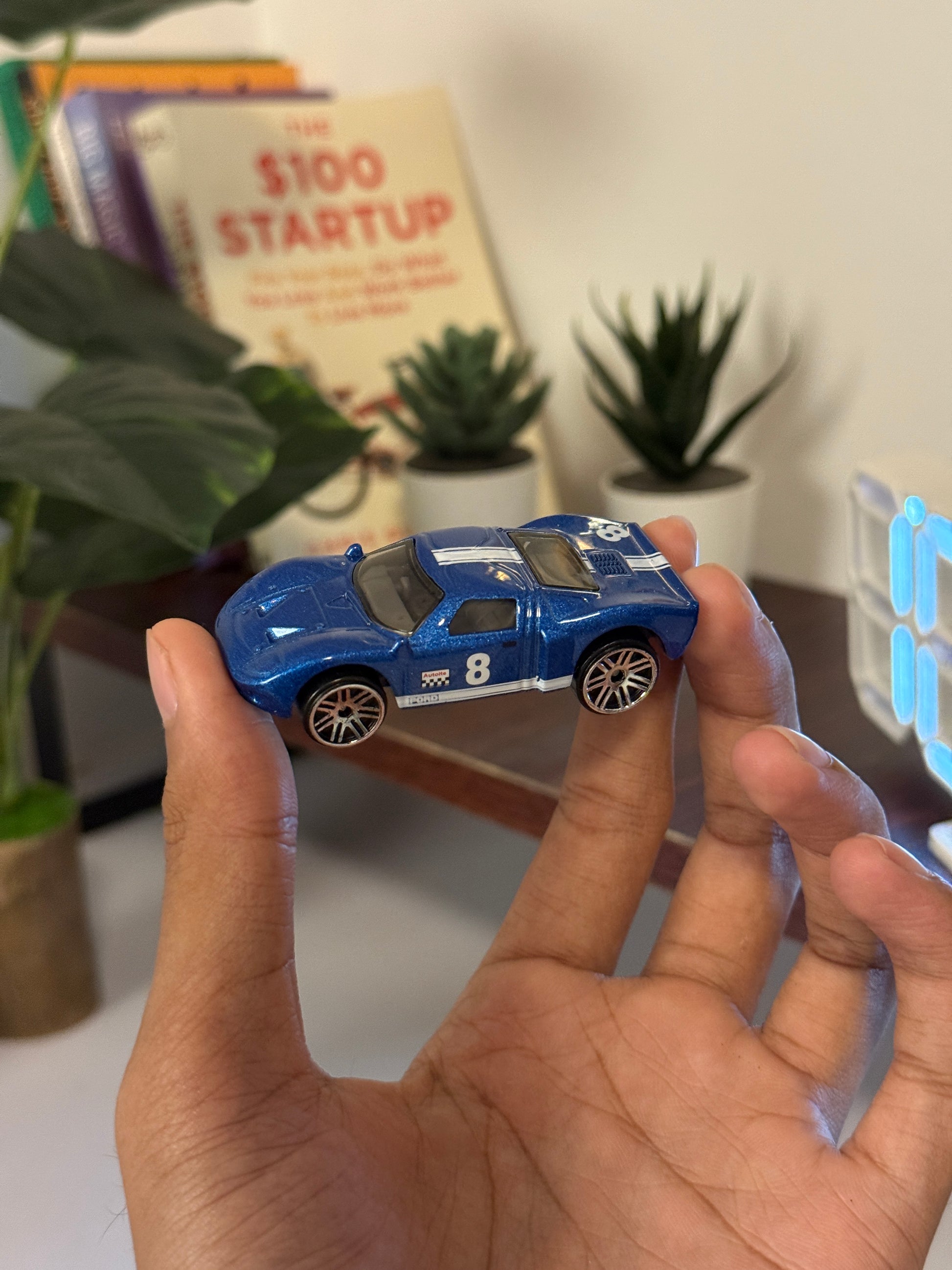 Hot Wheels Blue Racing Car #8 – Die-Cast Collectible